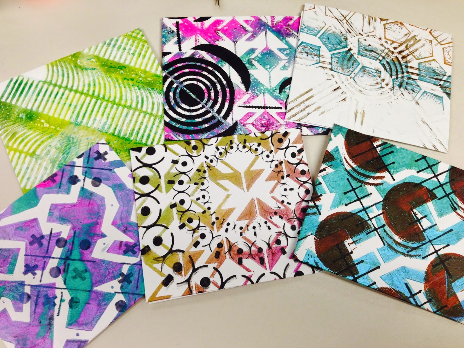 I will be playing with my stencils and stamps every chance I get to see what other really cool combos I can come up with! And all the prints I collect from this playing will come in handy -- why you ask???