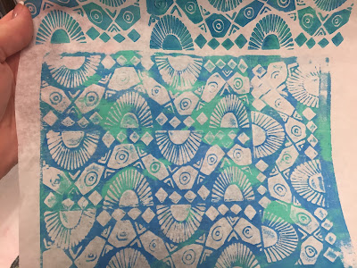 I streamed last Sunday and focused on playing with some new Artfoamie stamps. These stamps are even better than I imagined they would be. Really crisp images and they hold acrylic paint so well you can get multiple prints out of one 'inking'. They are great on the gelli plate too. Check out my YouTube video that I uploaded from the live Ustream broadcast. Here are some pics of my favorite gelli prints from this session: